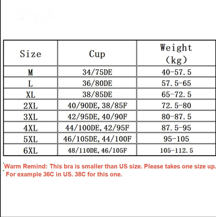 Answer 1: This bra is available in a wide range of sizes from M to 6XL, catering to diverse body types and ensuring a comfortable fit for all women.